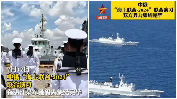 据新华社7月12日报道,根据年度计划与中俄双方共识,中国与俄罗斯两国军队将会于7月上旬在广东湛江附近海空域举行"海上联合2024"联合演习,俄方参演舰艇编队已经在7月12日抵达广东湛江某军港,双方参演兵力已全部集结完毕。