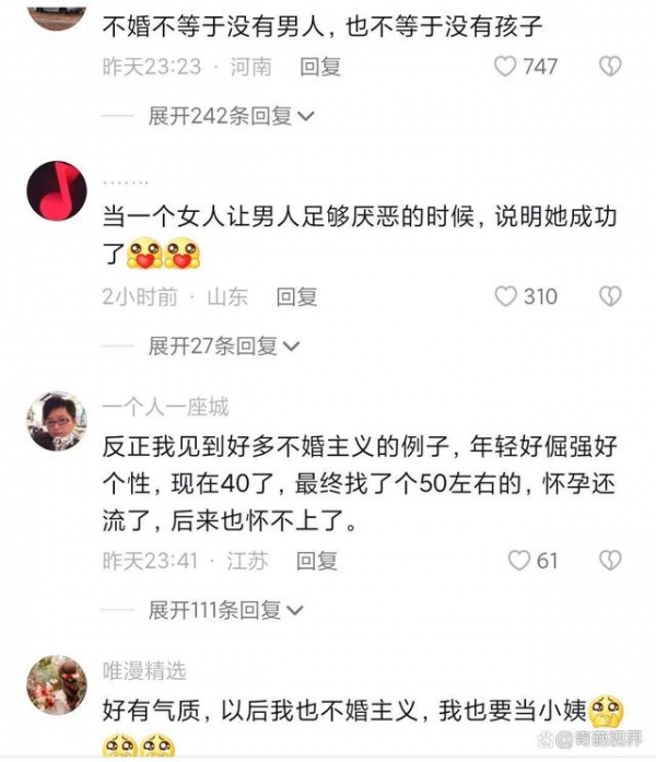 也有网友评论说,会挣钱的叫不婚主义,不会挣钱的叫嫁不出去。