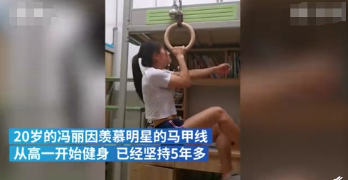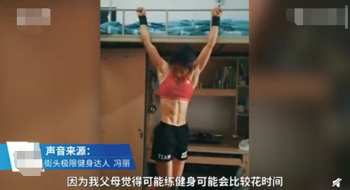 其实,冯丽一开始也并没有像现在这样"刚",据她本人所说,她是在上高一的时候,因为看到明星的马甲线,很是羡慕,所以,冯丽就开始了自己的健身。大家也都知道,我们日常生活中,健身都是去健身房锻炼的,而冯丽不一样,她是在随时随地就可以锻炼的那种人。不管是在家里,还是学校的宿舍,亦或是户外,她都可以锻炼自己。训练不需要太大空间,器材不用太多,从基础动作练起,每天都能进步一点点。甚至因为她在宿舍中,经常把吊环挂在床沿就开始自己锻炼,用床的柱子做双力臂,上床的时候都不用梯子了,所以,也深受宿舍人的崇拜。从开始健身都现在,冯丽都一直坚持着,就算自己有时候也会感到寂寞,但她还是坚持了下来,从来没有想过放弃。到今年,冯丽已经极限健身5年多了,现在的她不只有腹肌,而且还有厚厚的老茧,看看冯丽一双全是老茧的手,小编就知道她为什么这么厉害。作为热爱街头健身的女孩,冯丽说,这次达人秀的经历,也算是一段特殊的体验。"希望,通过自己的示范,让更多人都来玩街头健身,特别是女孩子。"