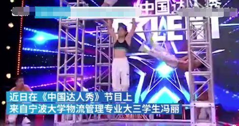今天,我们就拿从事极限健身的一个95后女生冯丽说吧。说起冯丽,想必大家都不知道她是谁?冯丽是宁波大学物流管理专业一名大三学生,今年20岁,只是最近她有点火,而且她火的原因,就是这个所谓的极限健身。她和街健伙伴们参加了最新一期的《中国达人秀》,我们先来看一段,他们在《中国达人秀》上的精彩表演吧!在节目中,一群热爱街头健身的年轻人表演了一套街头健身动作,而身穿黄T登场的冯丽是这支队伍中唯一的女生。谁都没想到,这个长相很清秀的小姑娘,却是相当硬核。在全场评委和观众的惊讶脸中,她轻松地展示了单臂引体向上、单杠漫步、前水平等动作。不仅如此,她还拥有着我们大家都羡慕不已的腹肌,而且腹肌的数目也是不少,达到了6块,简直就是我们口中的"女汉子"本人了。