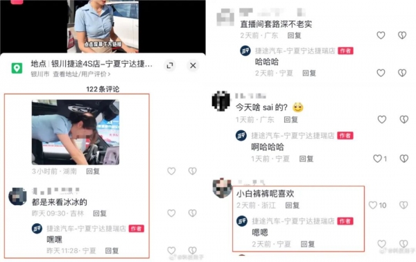 据悉,视频中的女主播叫"冰冰",经常在抖音账号"捷途汽车-宁夏某店"出镜。该抖音号有7万粉丝,账号认证信息显示为"宁夏宁达捷瑞汽车销售服务有限公司官方账号"。