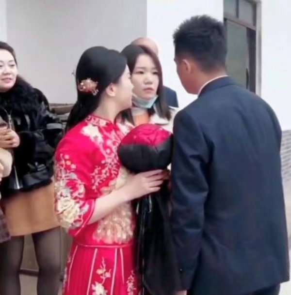 新郎盯着她看了一会儿,慢慢地伸出一只手,轻轻地拉下她脸上的口罩,看到他的容颜后,新郎顿时不淡定了!
