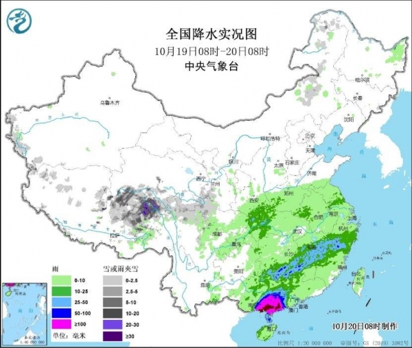 10月20日,据中央气象台消息:监测显示,昨日,受台风"三巴"影响,广东西南部、广西东南部出现暴雨到大暴雨,广东茂名、湛江、阳江和云浮,广西玉林、北海和钦州部分地区特大暴雨(250~450毫米),北海局地超过500毫米;广东西南部沿海、广西东南部沿海出现7~9级、局地10~11级阵风。