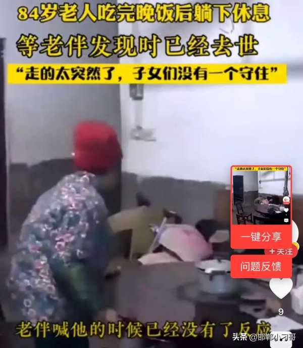 84岁老人吃完晚饭后躺下休息,等老伴发现时已经去世