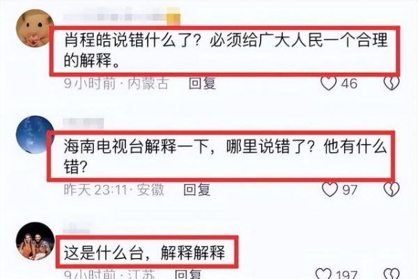 尽管程皓说出了不当的话,但他完全没有到被停职的程度啊!于是,网友们纷纷涌入海南电视台的评论区,质问电视台为何要停职程皓,程皓犯了什么错?