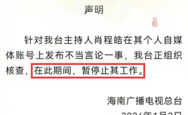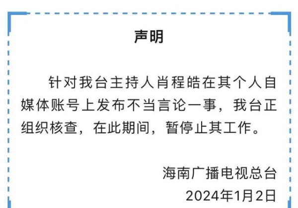1月3日,程皓在个人账号上发布了动态,看上去精神状态良好,似乎没有受到停职的打击。这也让人猜测,海南台对程皓的处罚可能只是批评教育,而非直接停职。