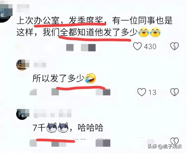 还有网友分享了他们办公室也有一位同事遇到了同样的故事,导致大家都知道他发了多少,哈哈哈,这样的事情还不少。