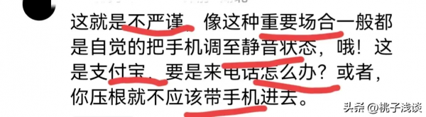 还有网友持不同观点,他认为"这种行为是不严谨的,像这种重要场合一般都会把手机调成静音状态,这是支付宝要是来电话怎么办,或许就不该把手机带进去。"。