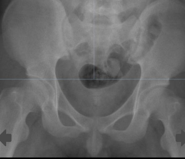 术后复查X线显示,膀胱内异物被取尽