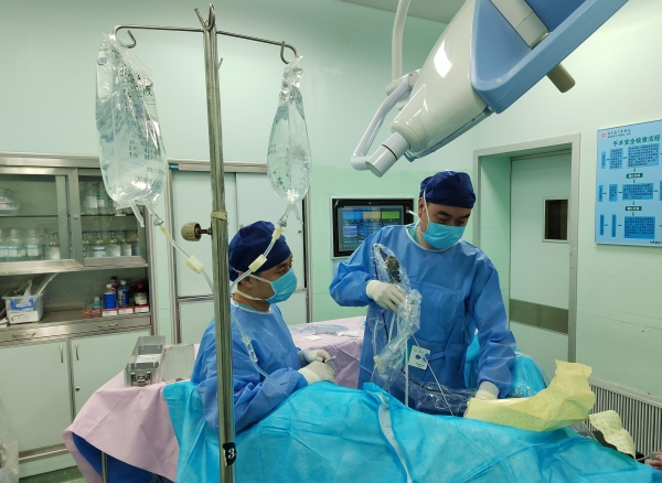 省医泌尿外科二病区专家向旻、文豪为患者实施微创手术