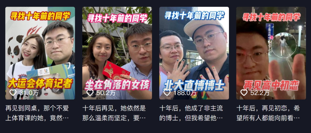 实不相瞒,一个月前我就被算法推送了这个系列的视频,也就是它的第一期、拜访高中初恋女生的那条。
