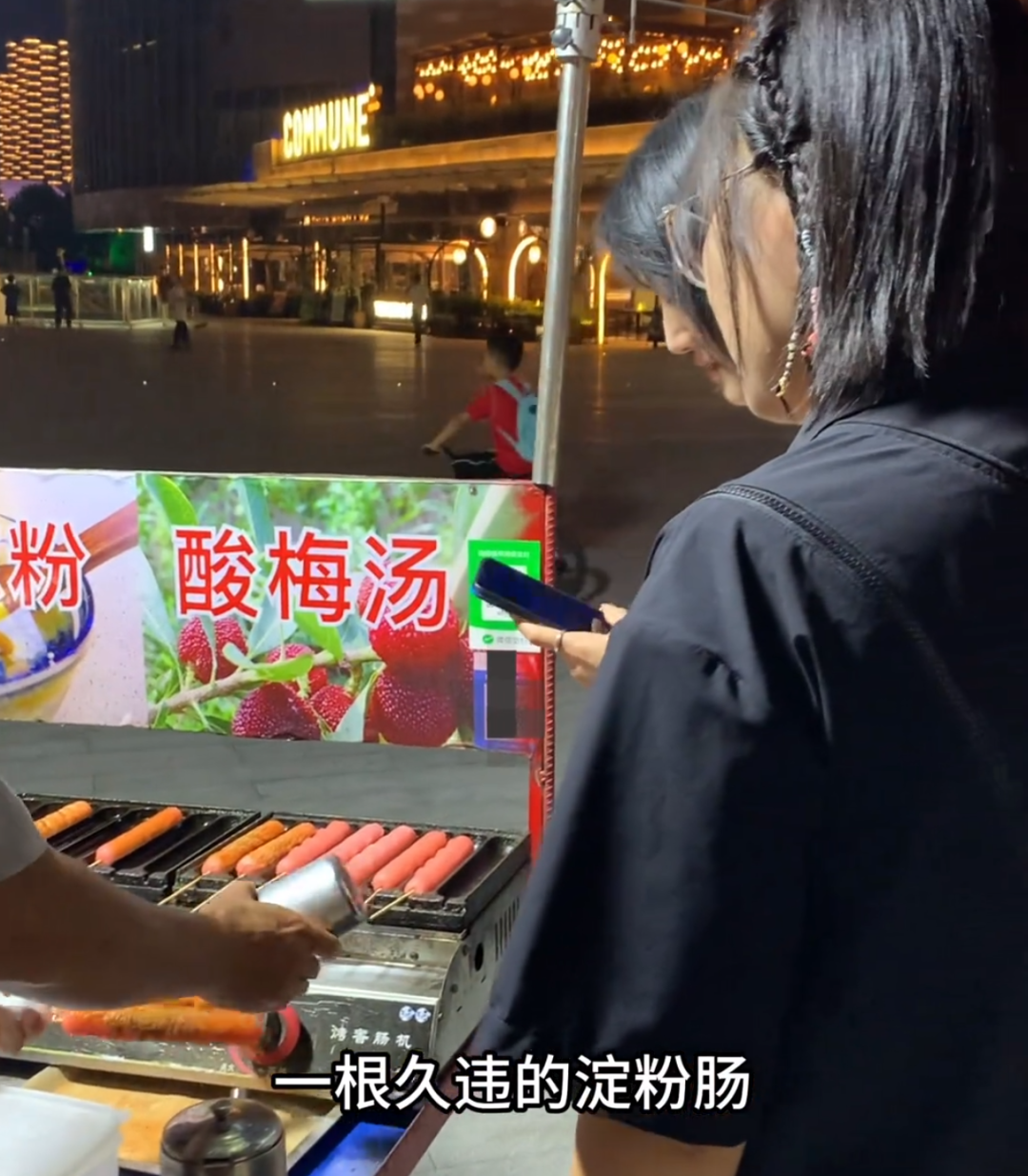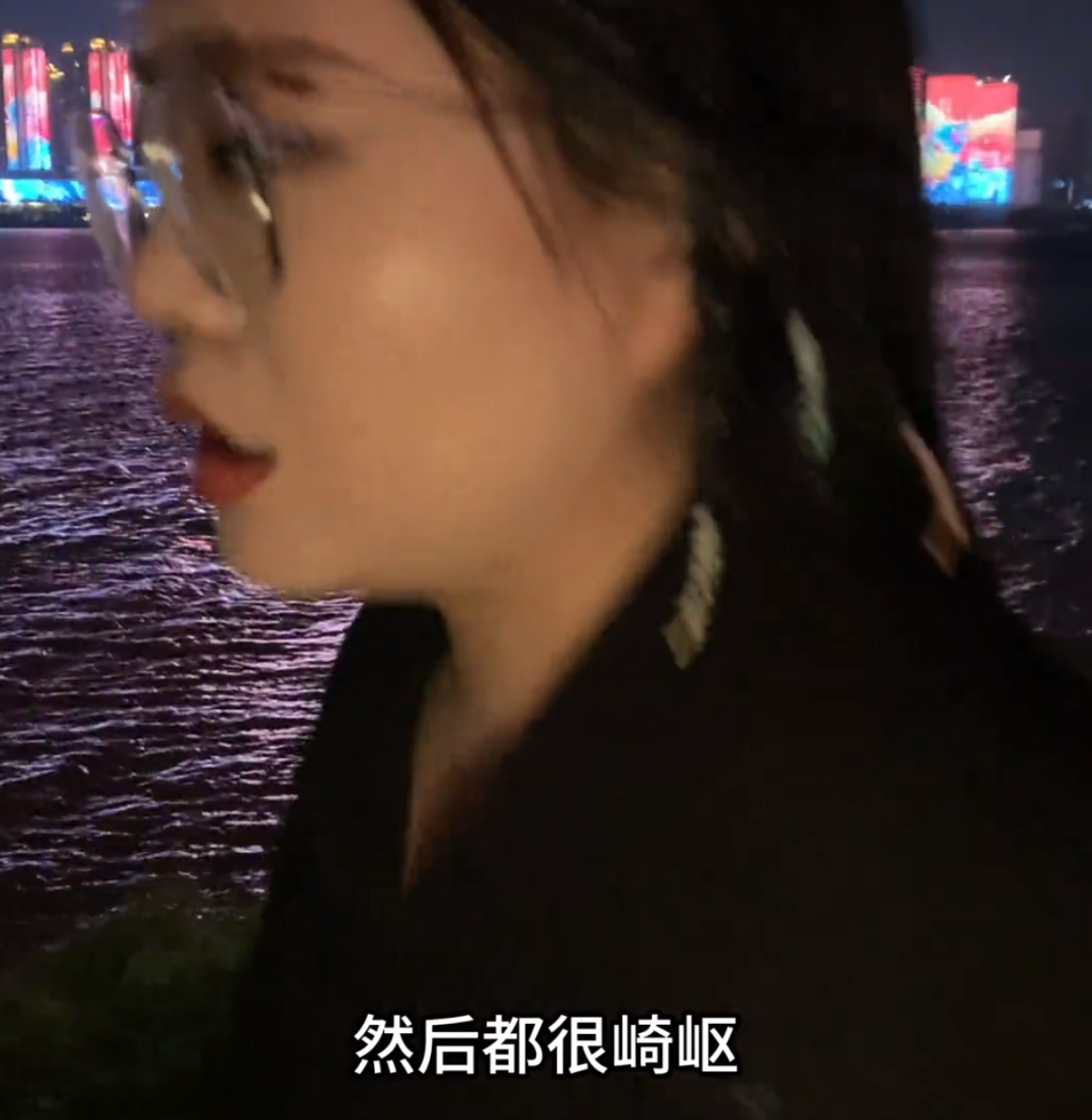 等到李雪琴节目录制结束,又买了根路边摊上的淀粉肠,去江边散步。