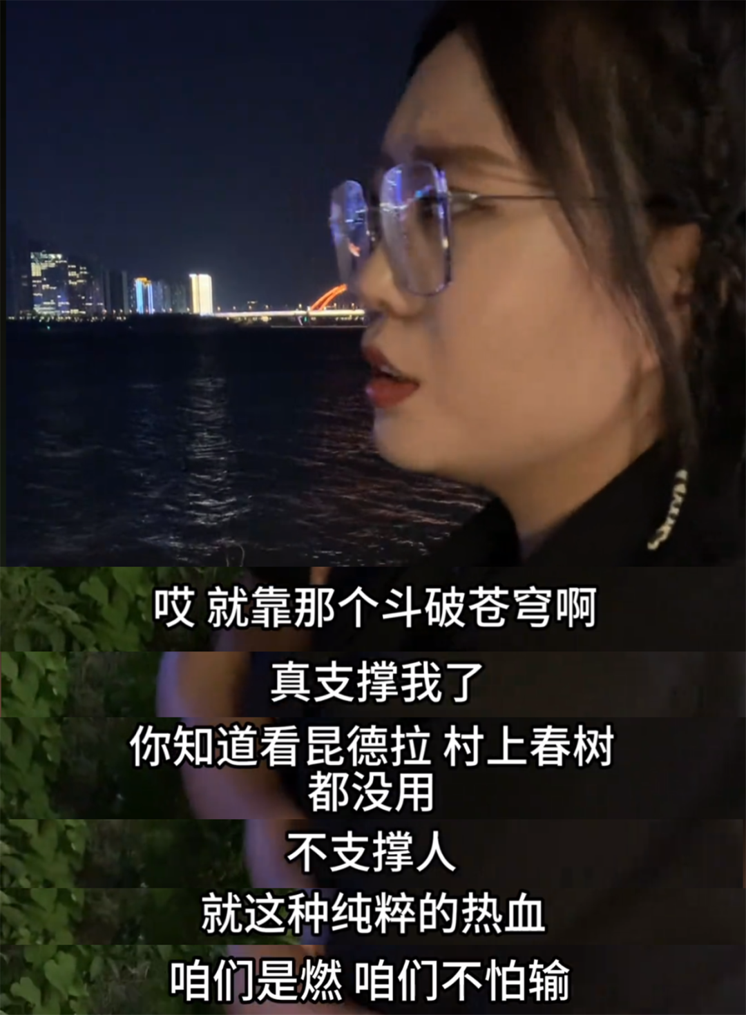 "看昆德拉、村上春树都没用,不支撑人",只能是那种纯粹热血的逆天改命网文来告诉自己"咱不怕输"。