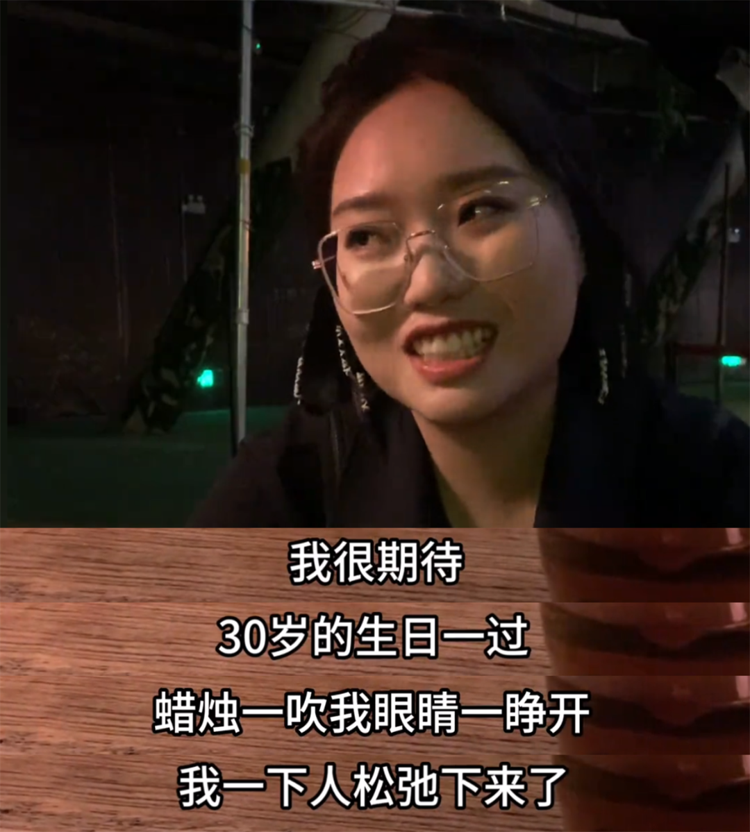 "期待30岁的生日一过,蜡烛一吹我眼睛一睁开,一下子人就松弛下来了。"