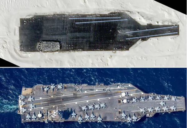 根据美国卫星云图的具体资料,这都航母靶船十分精细,连航母细节升降机/舰岛/桅杆和雷达都等同福特号。也就是说,完全是冲着美航母去的。