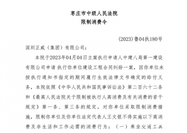 然而就是一次的官司,又牵扯出了有关正威集团的其他烂摊子,而正威集团的老板王文银也被限制了高消费,之后这一事情虽说已经解决,但是这件事对正威集团的影响还是不小的。
