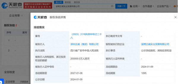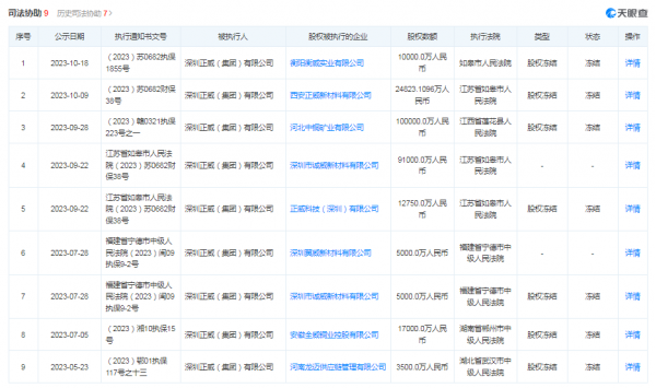 从中建八局之后,关于正威集团的雷一个一个的曝出,贵阳银行向正威集团讨债16亿元,而在某查企业的软件我们也可以得知,关于正威集团的诉讼也在不断增加,甚至有被资产冻结的情况。