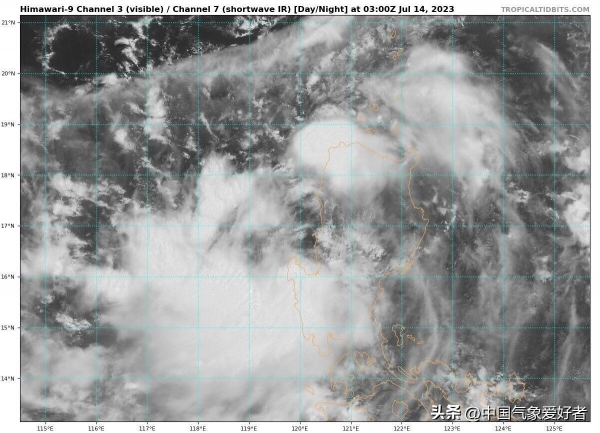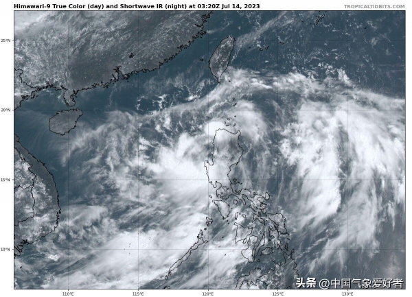 7月14日上午,从高清可见光卫星云图上可见,今天我国南海-菲律宾以东有着大范围的浓厚云团,这些云团还明显的开始旋转,这是台风胚胎正在活动,新台风开始酝酿的迹象。这也意味着,在1个月的台风沉寂期过后,西太平洋的台风活跃期重新启动。