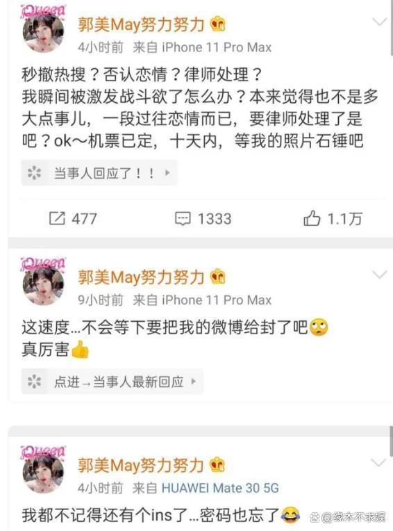 郭美美还称两人认识还不到一个月,黄景瑜便透露想来北京和自己同居。