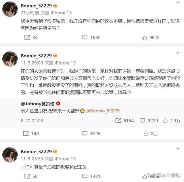 从 11月3日开始,王雨馨又开始控诉黄景瑜,对其不吝各种贬低之词。如今又曝出了黄景瑜 "吃软饭",一年花自己上千万买衣服鞋子,着实令人瞠目。
