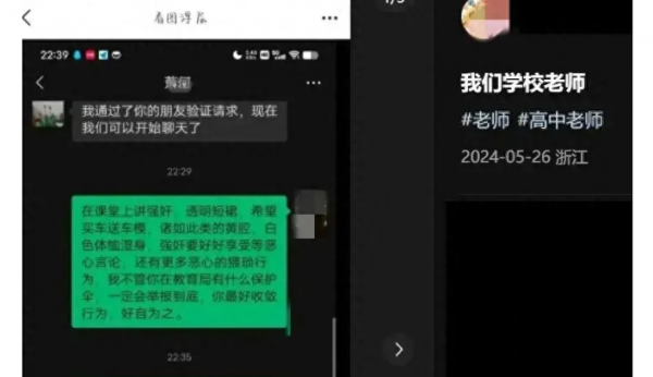 据了解:在5月26日的浙江绍兴,网传一中某男老师在课堂上对女生开黄腔(发表不当言论)并做出不适当行为(不雅动作),已经引起了学生们的质疑和不适。