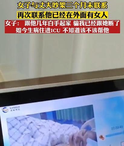目前,丈夫住进了ICU,女子很是苦恼,对于这个男人,还要不要帮他?