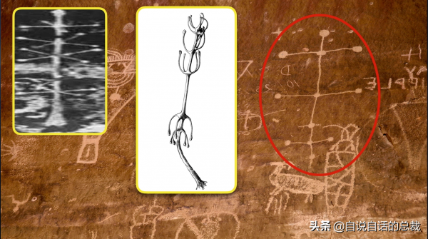 最后,爱好者锁定了离这个区域文化上最接近的远古记录--1万公里外,美国中部犹他州的印第安人岩画,印第安"生命之树"的形象是这样的,大家自己看吧,究竟是克氏海绵插图更像这个"天线照片"一些呢?还是印第安生命之树更像一些呢?