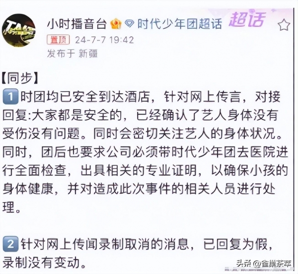 7月7日,娱乐圈传出震惊消息:时代少年团成员宋亚轩和刘耀文出了车祸!消息一出,粉丝们的心都提到了嗓子眼。好在超话里迅速传来好消息,称艺人身体没有受伤,两人已暂时回到酒店休息,并会安排事后检查。这下粉丝们才稍稍安心,但心里依然忐忑不安。