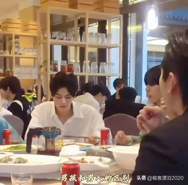 第一个镜头是一桌年轻男性,他们看上去二十岁左右的样子,皮肤白皙,头发茂密,衣着得体,哪怕吃饭的时候有说有笑也是安静而优雅。