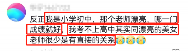 还有网友调侃,我上小学初中时,哪个老师漂亮,哪一门成绩就好。我没有考上高中就是因为漂亮的美女老师少。