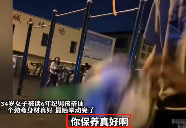 李女士又问道"为什么啊?那你看我像多大的。"男孩回答"我感觉你真像20几岁吧"李女士紧接着问道"看我像20几,你看我像20几的。"这时的男孩还没有回答上来,李女士又紧接着来了一句"他都快10岁了"这句话好像是在说自己的孩子,那李女士出来遛弯的时候孩子应该是跟在身边的。