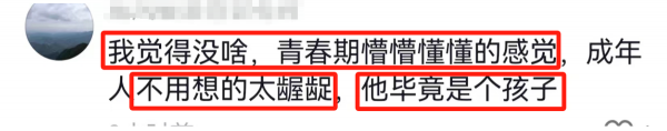 还有网友觉得,没啥啊,青春期懵懂的感觉,不用想的太龌龊,他毕竟还是个孩子。