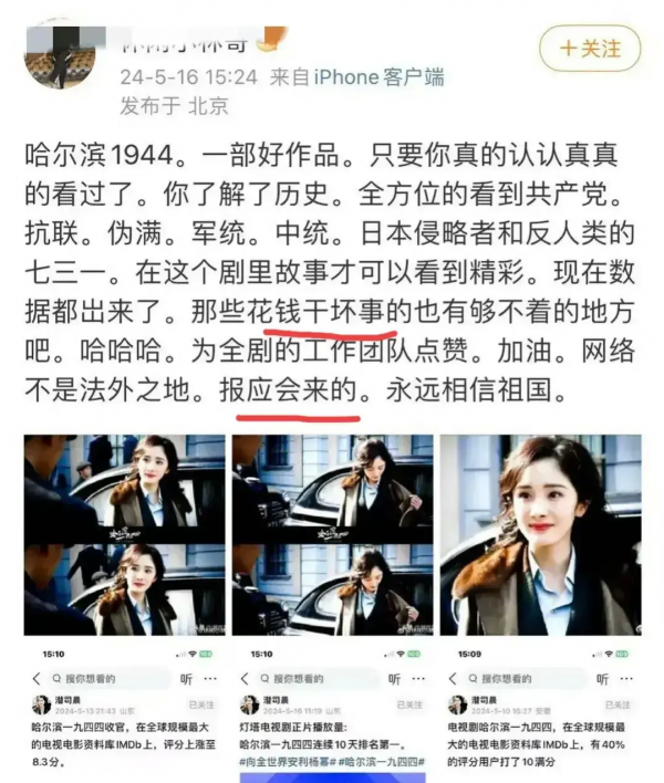 《哈尔滨一九四四 》在一片唏嘘声中播完了。本来以为一切已落下帷幕,想不到此时杨幂的爸爸发声了。