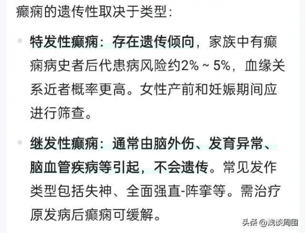 笔者特意搜了一下,癫痫是有一定概率(2%-5%)遗传的,只希望孩子的妈妈病因是后者,属于继发性的。
