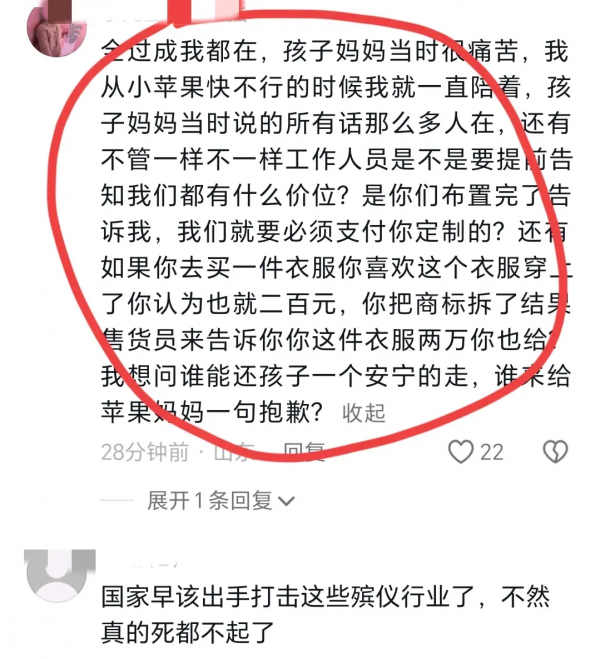 而你以为老板刚开始要价就这么多吗?根本不是大家想的那样,据悉老板刚开始要价18800元,后在家属的质疑下,对方便宜了5000元,这才变成13800的。最后在博主的协调之下,对方又提出便宜3000元,变成了10800,最后在打假博主的持续协调之下,小苹果妈妈支付了3000元。