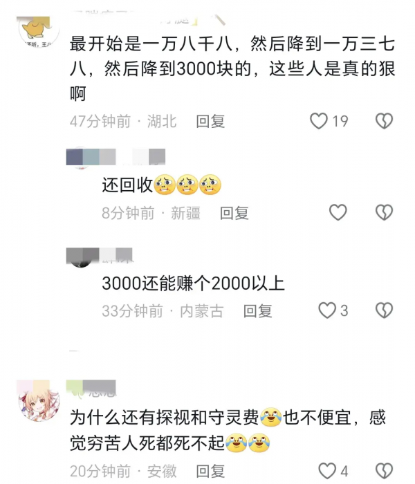 "最开始是一万八千八,然后降到一万三千八,最后降到3000元,这些人是真的狠啊!"