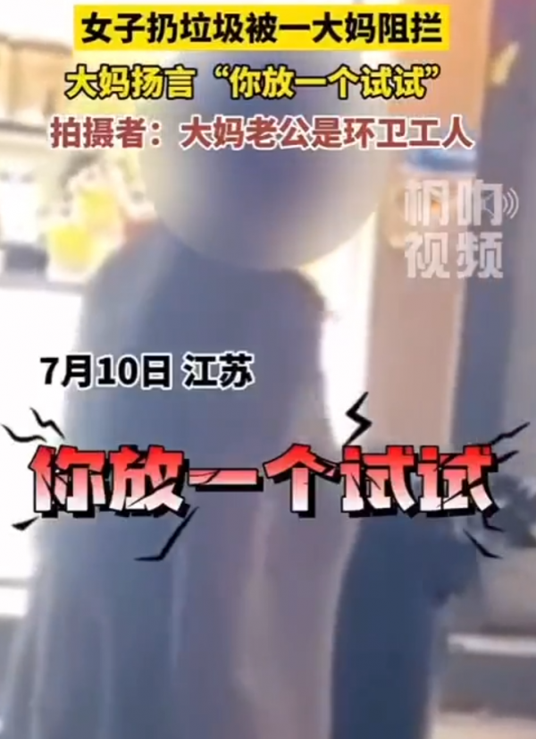 7月10日,在江苏南京夫子庙街道老门东,一名白衣女摊主正准备往垃圾桶里扔垃圾时被一位大妈阻拦。老太太直接说道:"你放一个试试?我说不可以放就不可以放。"