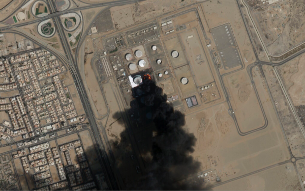 胡塞武装的袭击造成沙特炼油厂大火