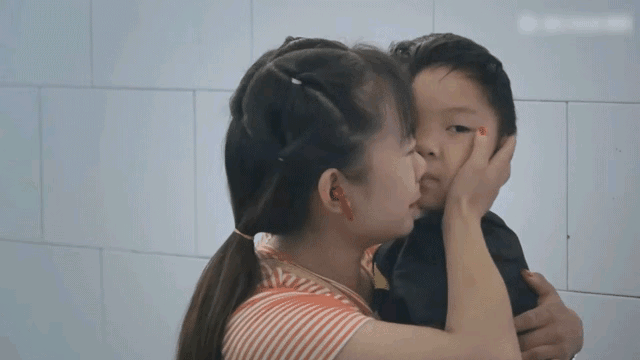 来到了学校门口,看到儿子走出校门,她蹲下来一把将孩子搂紧,摸着他的小脸:"我是妈妈,你不认识我吗?快喊妈妈。"