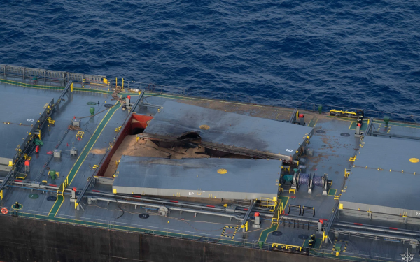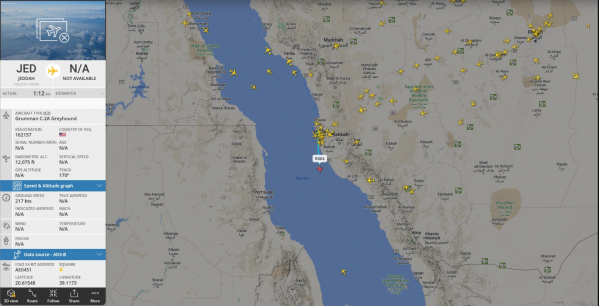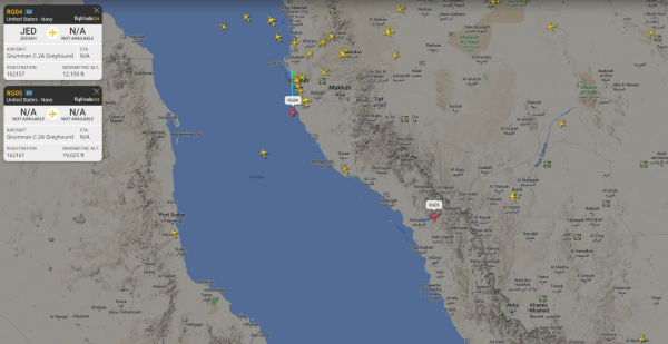 依旧可以看到美军舰载运输机飞来飞去,也从一方面显现"艾森豪威尔"号航母的起降能力没有受到明显的影响,可以判定之前的打击并没有造成多大的损失。根据世界航行航线系统在5月31日到6月1日的航线记录,"艾森豪威尔"号航母遭导弹攻击后,放飞了多架次舰载机,但是从编号看,只有2架C-2灰狗运输机,往返于"艾森豪威尔"号航母与巴林的第五舰队总部之间,其间穿越沙特领空,进行了多次起降。