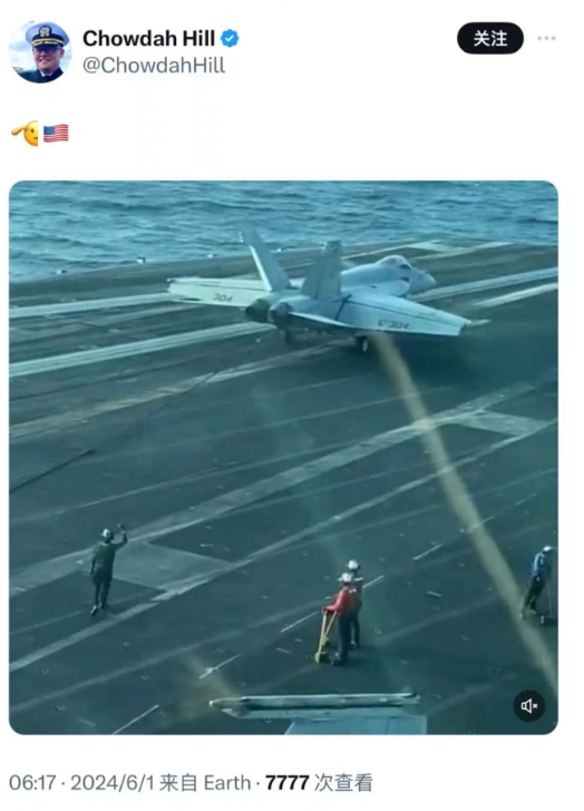 当然,对于美军航空母舰"艾森豪威尔"号遭到了攻击这件事,也门胡塞武装宣称是击中目标,美国官方层级对此保持了沉默,仅有一名国防部官员表示没有发生攻击。而且,艾森豪威尔"号的指挥官克里斯托弗·希尔,还在自己社交媒体上发布了F-18舰载机着舰的画面,以此证明自己的航母没有遇袭,甲板完好无损。
