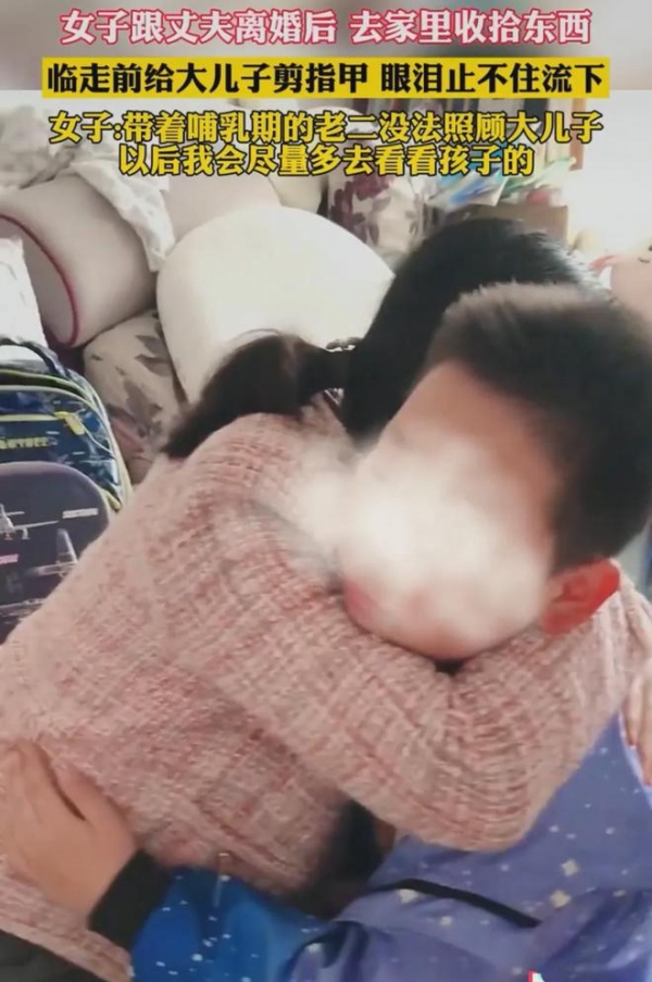 11月4日,山东,一位妈妈分享和丈夫离婚临走前帮大儿子剪指甲,不舍分离抱着大儿子直掉眼泪。网友说,看着好心疼啊。