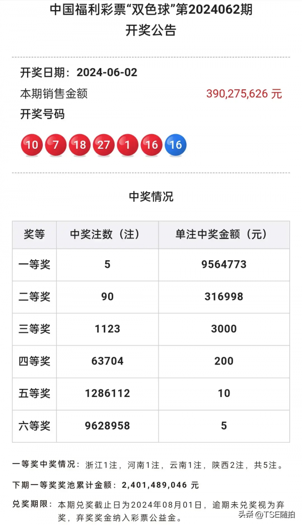 昨天晚上21:15分,又是激动人心的时刻,福彩双色球2024062期开奖了。祝福所有彩民朋友:早中晚中,早晚要中!