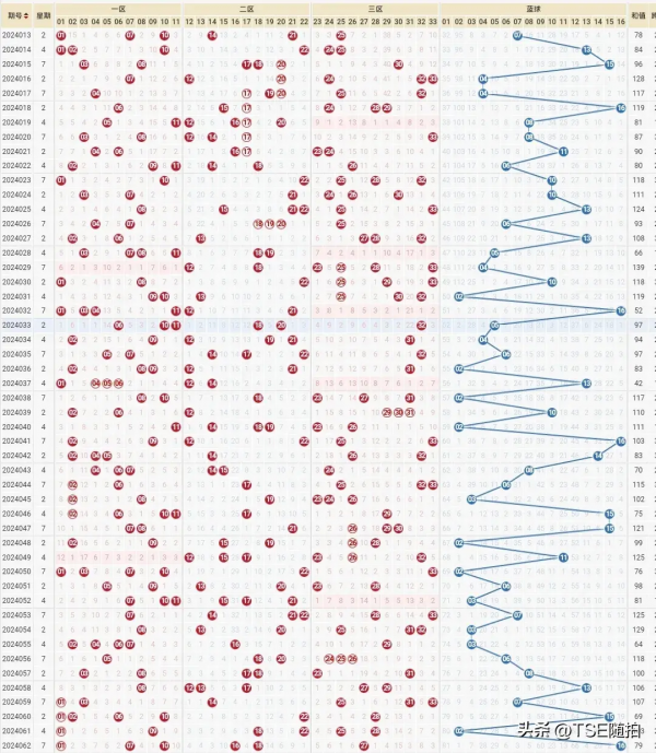 福彩双色球2024013期至2024062期走势图