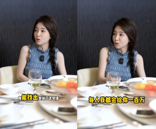 为此她表示,自己愿意悬赏百万请网友找出证据,只要找到任何她曾经说过类似话的画面,她都愿意每人支付一百万。