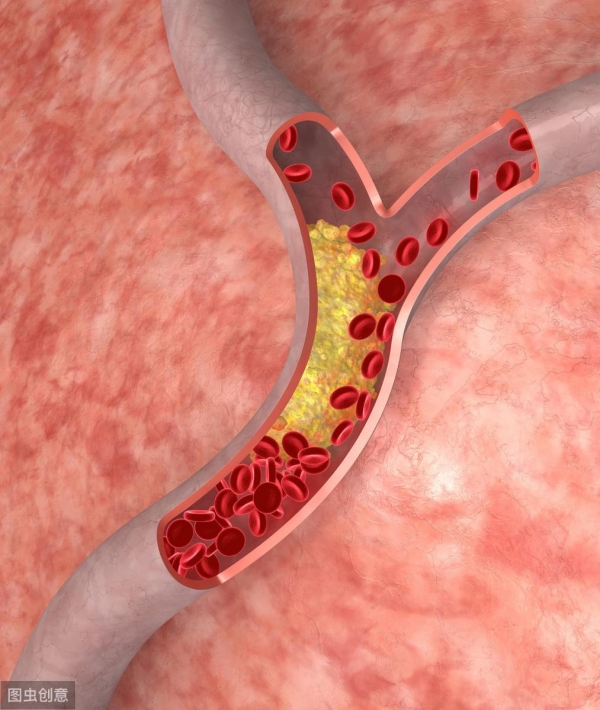 来自下方的血流,冲击到分叉处,会形成血管伤口,不断沉积脂质,出现动脉粥样硬化性斑块,阻塞血流。