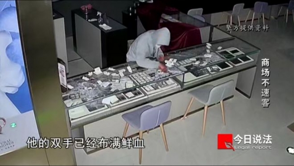 案件还在摸排中,然而,案发后的第10天,失窃商场一楼再次发生盗窃案。失窃柜台玻璃有三处严重破损的地方,玻璃边缘留有红色斑迹,警方怀疑是嫌疑人的血迹。