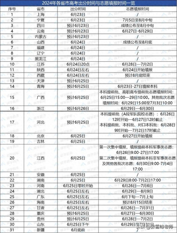 各省、市、自治区具体准确的高考成绩查询时间及志愿填报时间还需学生和家长们密切关注所在地教育考试院网站公布的官方消息。