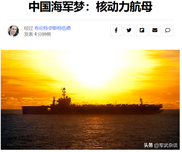 从此前官方的公开表态上来看,目前正在进行舾装的"福建"号航母无疑是一艘常规动力航母。在国内不少期待核动力航母的军迷感到惋惜的同时,不少外国军事专家也开始对中国海军的第四艘航母展开了预测和讨论。美国军事专家布伦特·伊斯特伍德就专门刊文表示,核动力航母是中国海军的梦想,因此中国的第四艘航母必然会采用核动力装置。
