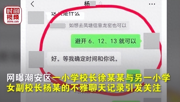 近日一则网传的不雅聊天记录引发了全网的关注和愤怒。据称这是广东潮州潮安区一所小学校长徐某某和另外一所小学女副校长杨某之间的私密对话,内容涉及肚兜、抱抱睡、生理期、内衣等隐私话题,暧昧又露骨,让人看了不寒而栗。
